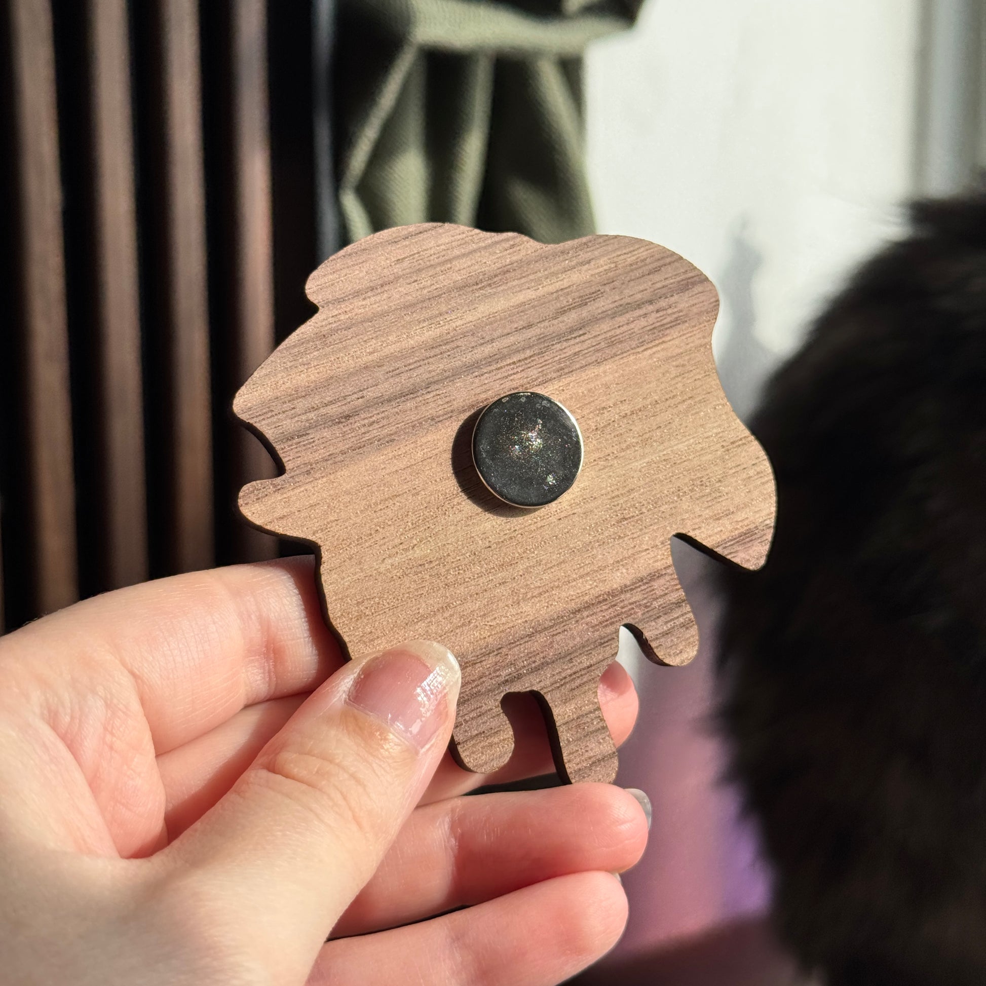 Digitally designed wooden magnet by me and made in the UK with eco friendly materials. Bring some nature and a pop of colour to your fridge door, whiteboard or any metal surface. This variant has the wood visible as the background.