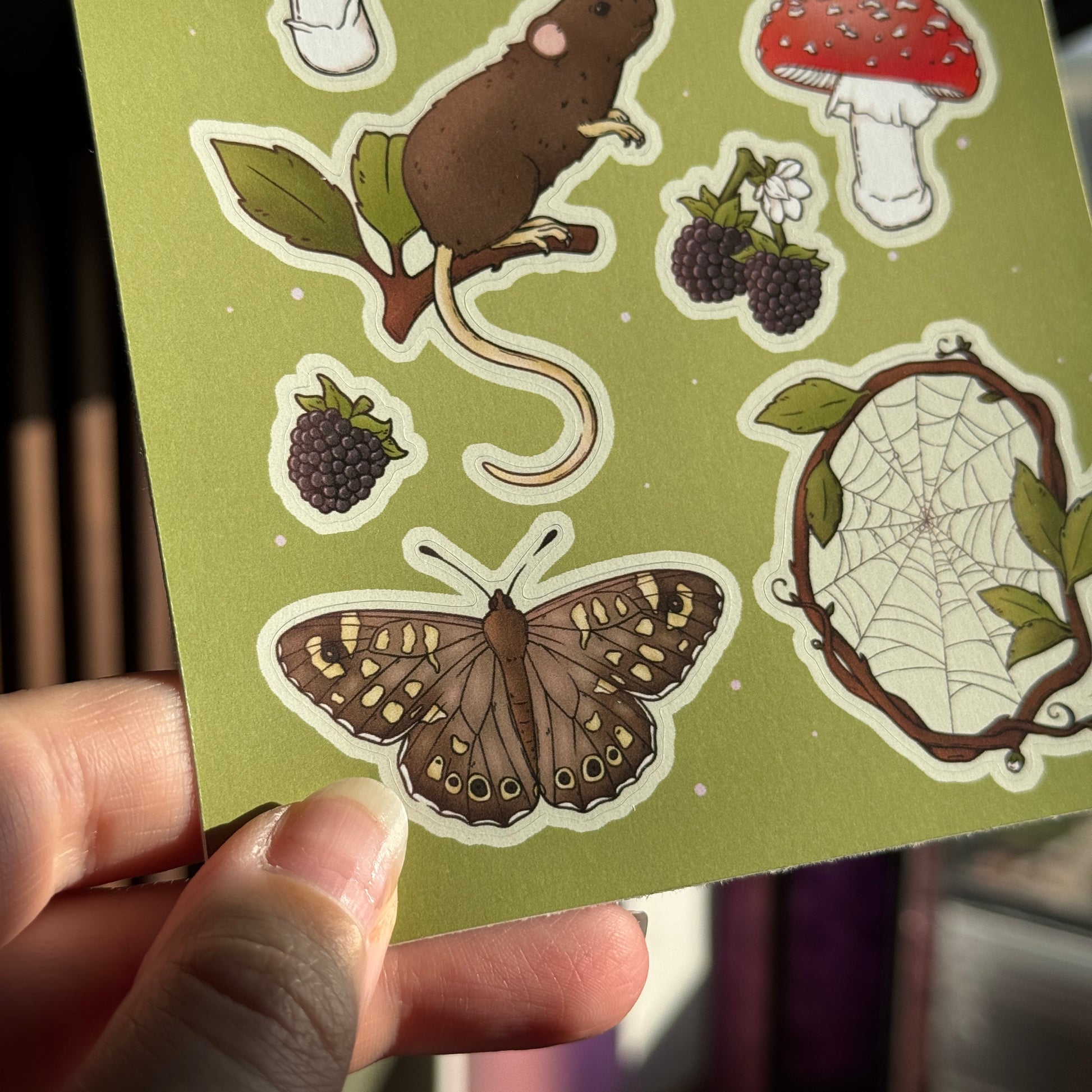 For the foragers and the nature lovers. Through the blackberry covered brambles and past the spiderwebs, you might some field mice, maybe some speckled wood butterflies and mushrooms of all kinds. Made from eco friendly materials.